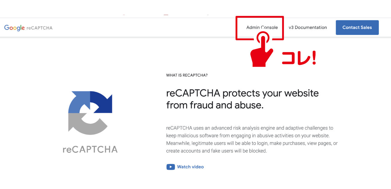 それでは、reCAPTCHAの公式ページへ移動しましょう。